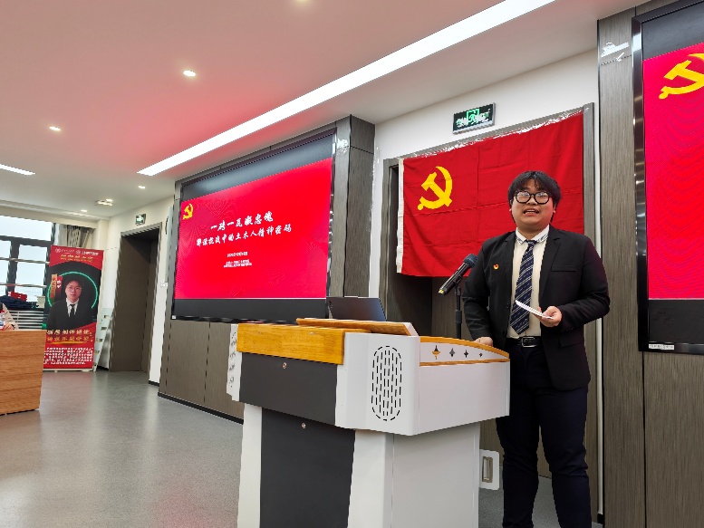 本科生第一党支部任建南以“砖铭烽火记忆,土木赓续红脉”为主题,围绕建筑与抗战的联结、砖瓦承载的记忆,阐述土木人的红色担当,呼吁青年一代铭记历史、传承红色基因,以专业践行使命。