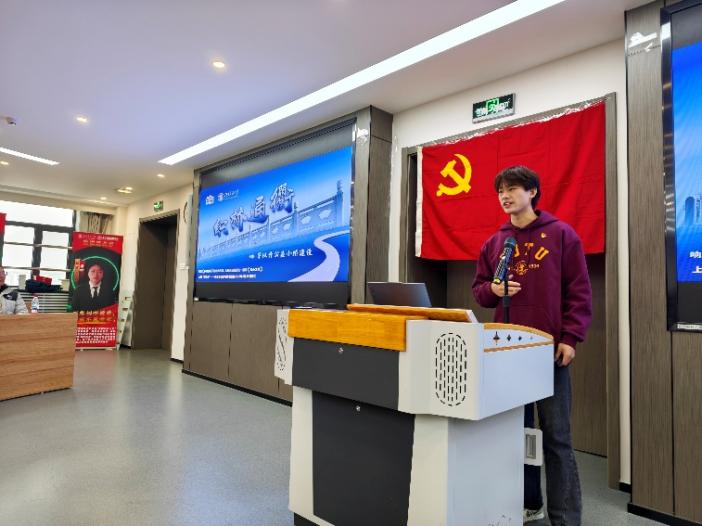 随后,土建学院茅以升科学家精神宣讲团邢光阳同学分享了“土建学院茅以升科学家精神宣讲团-茅以升公益小桥团队的故事”,生动展现了新时代青年学子对科学家精神的传承:以专业所学扎根基层、以实干行动践行公益初心,用青春力量续写着“科技报国、筑梦民生”的时代篇章。