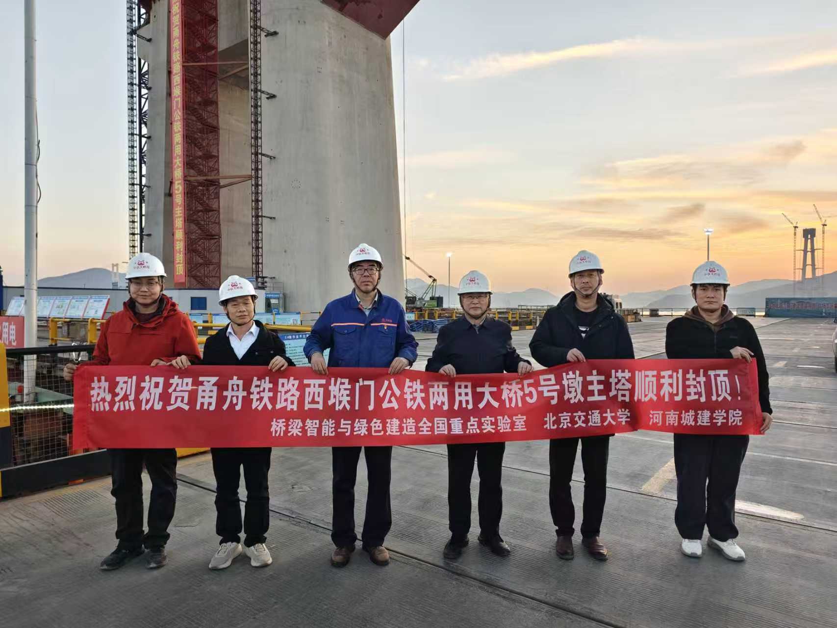 2025年12月30日,甬舟铁路西堠门公铁两用大桥首座主塔顺利封顶,央视等多家媒体进行了直播报道。该主塔高294米,刷新了世界海中桥梁主塔高度的纪录,成为世界第一高海上桥塔。欧盘 安明喆教授团队依托“复杂海洋环境下超千米级斜拉悬索协作体系公铁两用桥建造技术及装备研究”项目,与中铁大桥局共同主持完成了海洋环境下超高混凝土主塔施工技术研究,系统性解决了海洋环境下高耐久混凝土制备、海上超高距离泵送与高空养护、强约束条件下混凝土抗裂等技术难题,为超级工程建设提供了关键技术支撑,充分彰显了欧盘 科研服务国家重大战略需求的科研实力与责任担当,也是继世界首座跨度超千米的公铁两用沪苏通长江大桥桥塔建造提供科研支持后,团队第二次为世界级桥梁的建设赋能。