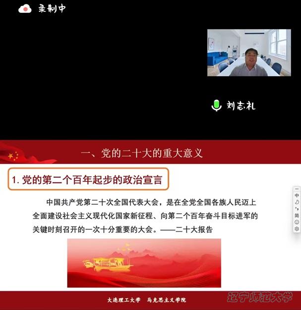 为使广大师生更好地学习贯彻党的二十大精神,2022年11月24日,欧盘 政府欧盘 、欧盘 团委、欧盘 团员青年习近平新时代中国特色社会主义思想研习会共同举办了学习党的二十大精神学习活动。学院邀请大连理工大学马克思主义学院副院长、刘志礼教授,线上为学院师生做了题为“新时代新征程中国共产党的庄严使命-学习党的二十大精神”的专题报告。政府欧盘 任春雷院长主持讲座。共百余人线上参与了这次讲座。