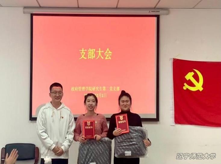 随后,政府欧盘 研究生第二党支部书记曹润生同志、组织委员郭纪同志、宣传委员贾宇韩同志分别为获奖同志颁奖。