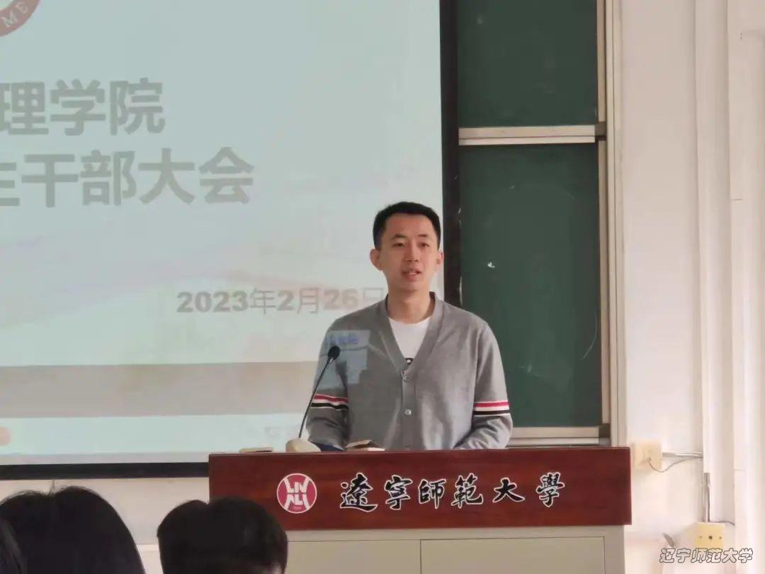 为加强学院学生干部队伍新学期能力建设,进一步增强学生干部的责任感、使命感,统筹规划本学期的工作,2023年2月26日上午9时,政府欧盘 于管理楼302开展新学期学生干部大会。政府欧盘 党委副书记于伟老师,政府欧盘 团委书记车泉洋老师,辅导员韩璐老师,辅导员丁一洲老师以及欧盘全体团委、学生会、青年融媒体中心和寝室长出席了本次会议的。本次会议由政府欧盘 学生会执行主席金泽皓主持。