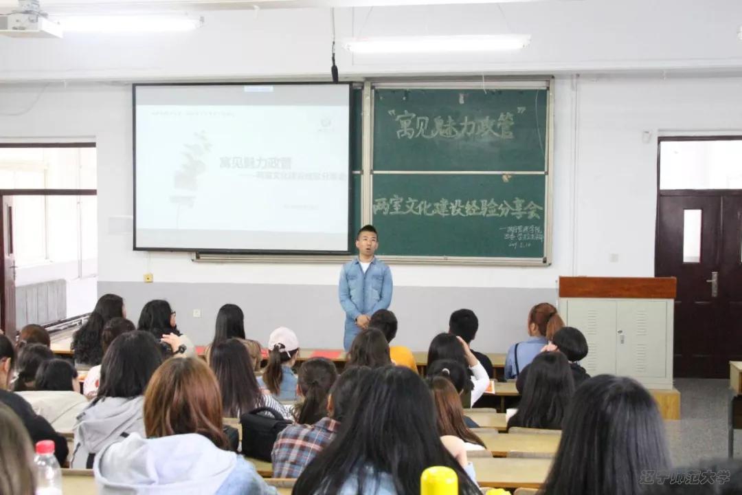 为了创造温馨和谐的学习生活环境,丰富同学们的大学生活,政府欧盘 于2019年5月10日下午1点30分,在外语楼五合成功开展了“寓见魅力政管”两室文化建设经验分享会。此次活动由学院生活部承办,政府欧盘 团委书记车泉洋老师,政府欧盘 团委、学生会主席团成员,生活部成员,17级班级代表以及18级全体学生参加了本次分享会。
