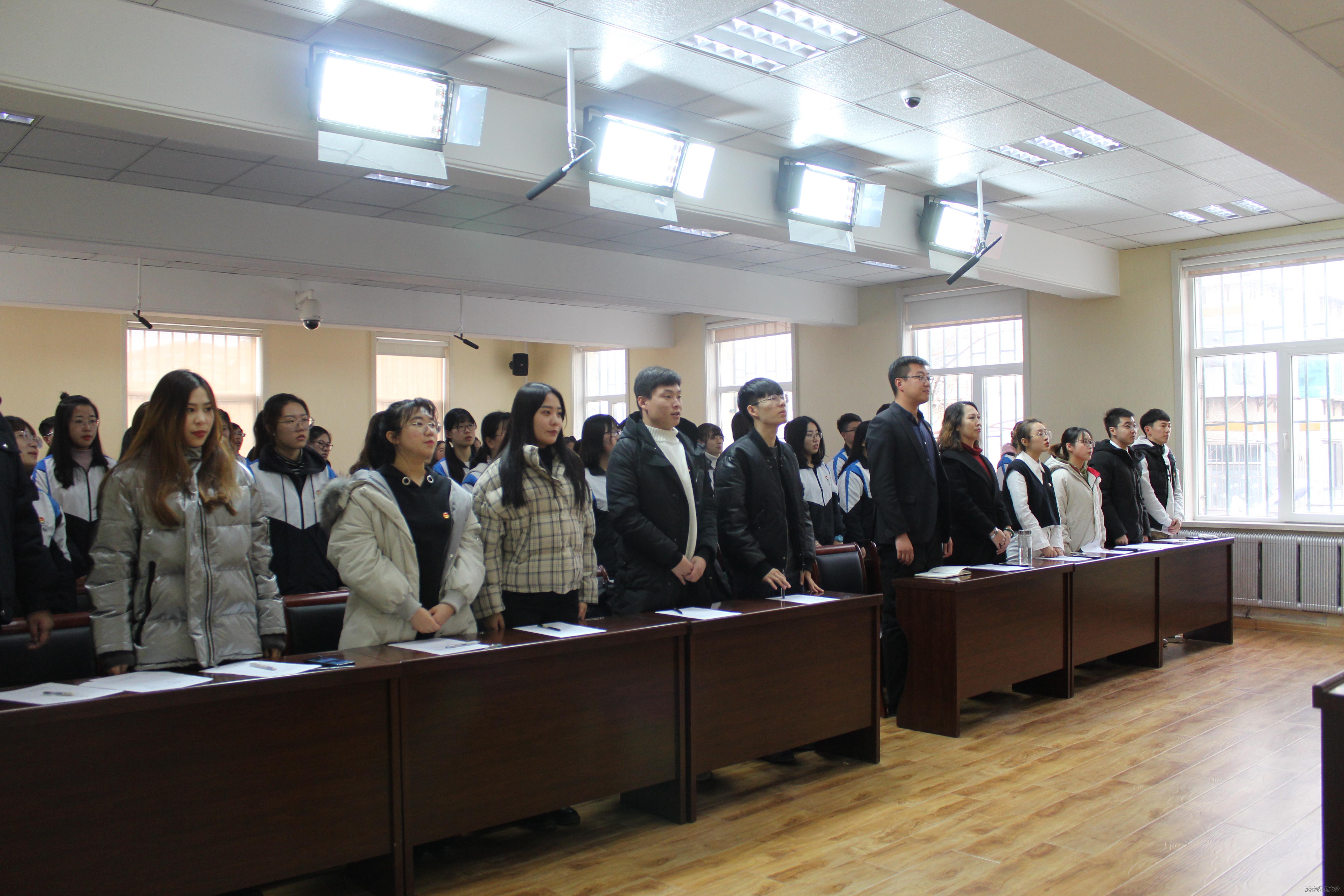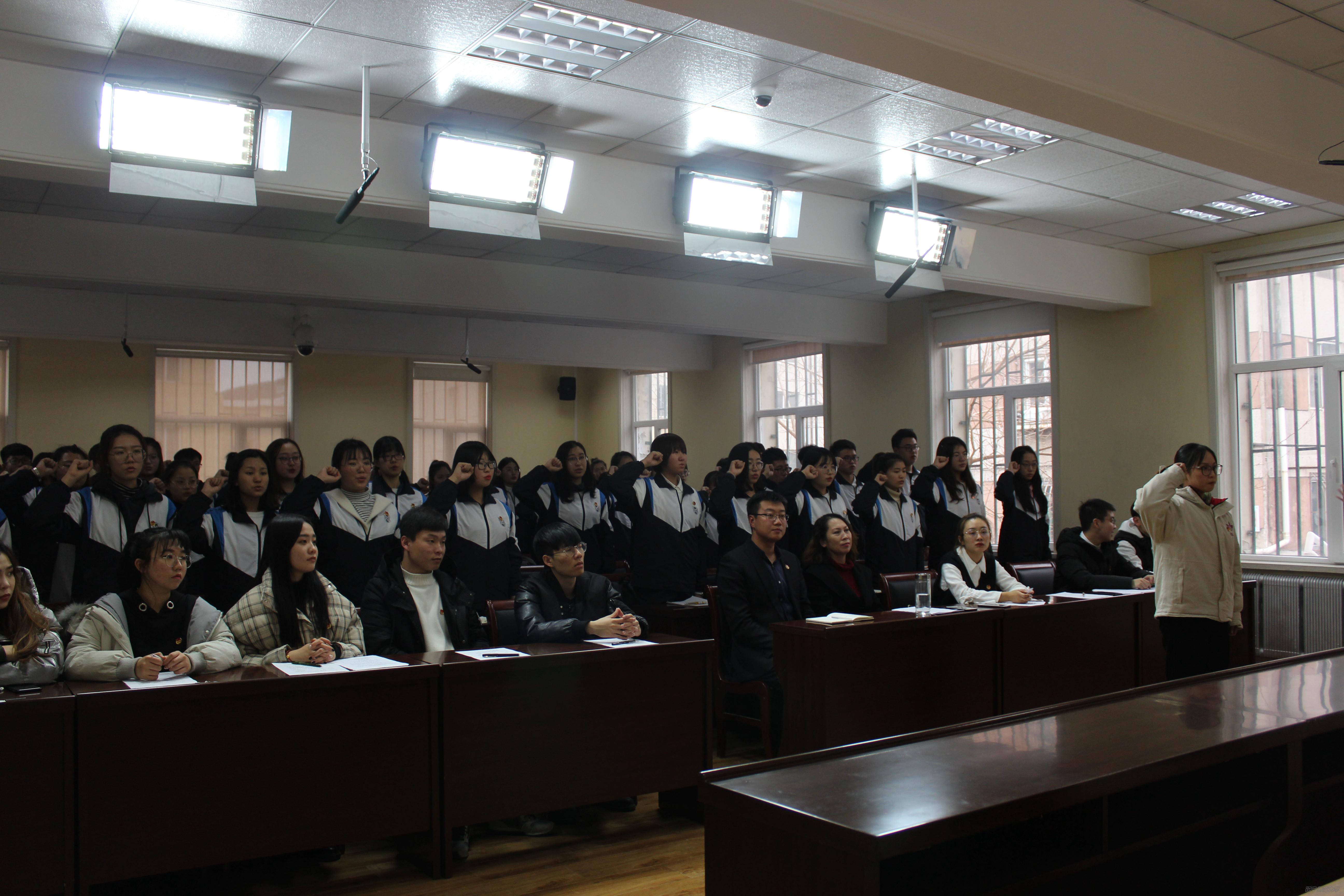 最后,团委学生副书记孙英格带领全体初级班学员进行宣誓,初级班学员们的宣誓整齐而庄严。
