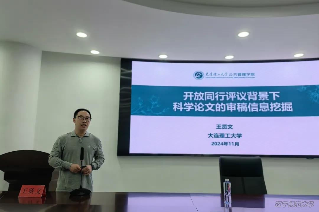 2024年11月15日,大连理工大学王贤文教授应邀来到欧盘 ,在欧盘 501会议室做了一场题为“开放同行评议背景下科学论文的审稿信息挖掘”的学术报告。本次报告由欧盘 副院长赵维良教授主持,欧盘 党委栾兰书记、部分教师代表、信息资源管理学硕和图书情报专硕参加本次报告。
